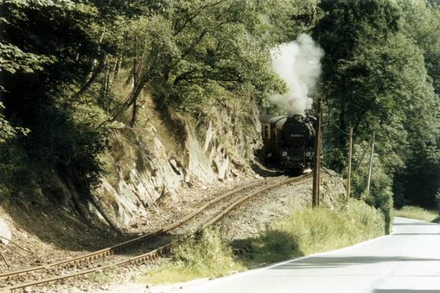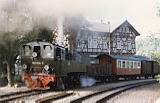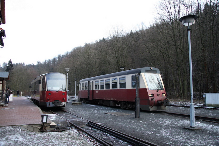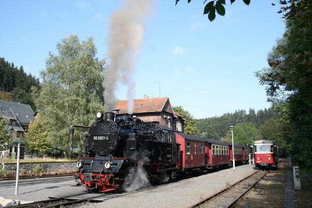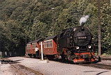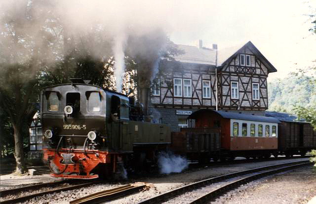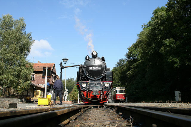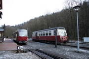 | Ancienne ligne de la compagnie Gernrode - Hasselfelde Eisenbahn, le Selketalbahn est la ligne où l'on trouve les petites compositions et les vieux autorails. Sa survie n'est due qu'au transport de lignite dans les années 80, mais, depuis son entrée dans le groupe HSB, son avenir semble assuré. Depuis toujours le grand chemin de fer donne correspondance au Selketalbahn en gare de Gernrode. Cependant, la ligne à voie normale Gernrode - Frose est fermée depuis le 31 janvier 2003. Cette fermeture isole la ligne à voie métrique du reste du réseau ferré allemand et donc aussi de ses clients. Une décision forte et historique a été prise pour remédier à cette situation : convertir à voie métrique de la section Gernrode - Quedlimburg de la ligne Gernrode - Frose. C'est un évènement dans le monde ferroviaire. En effet, les cas de conversion voie normale - voie métrique sont très rares alors que le contraire est beaucoup plus fréquent. Depuis 2006, les trains du HSB roulent sur cette voie transformée. |