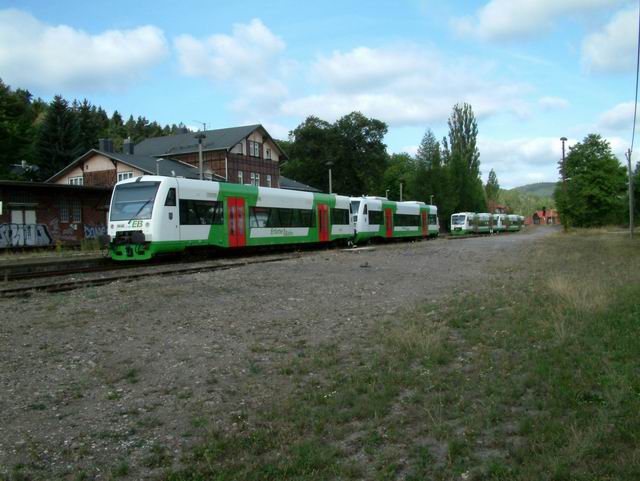 Le parc voyageur combiné des deux compagnies est composé de 41 'RegioShuttles 1' et de 4 'Itino'. En tant que compagnie privée, la division marchandise assure des trains à la demande grâce à son parc de locomotives diesel de ligne. Pour terminer, notons que le caractère "années 50" très marqué de certaines ligne se prête bien aux voyages spéciaux, entre autre en traction vapeur. Toutes les infos sont disponibles sur le site de la compagnie: http://www.erfurter-bahn.de |